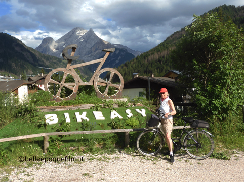 Eventi in Val di Fassa e Fiemme Una cicloturista, un po' in anticipo, sulla via che conduce alle Olimpiadi di Cortina